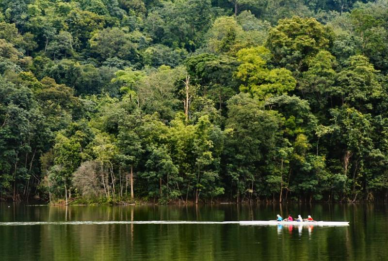 the early morning calm waters of batu lake, selangor were sheared and stirred by the boat of the women’s coxless four rowers and their oar blades, while the women focused their motivated mind and endurance, curtained by dense foliage, we the useless spectators cheered and jeered, though not at all effective in this july 2007 photo.