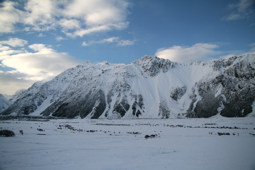 on a self drive trip in june 2010, when i reached mount cook village, which nestles at the foothill, about 12km from the summit, it was almost dark, but the reward was simply astonishing. looking towards the east, the snow covered hooker valley is a vast landscape that ends with mt. wakefield, at 2,058 meters, considered a holy mountain by some, which lies at the southern tip of mt. cook range. it also gave me a unique and enthralling experience with an extraordinary vision. this was a panorama of a pristine wonderland.