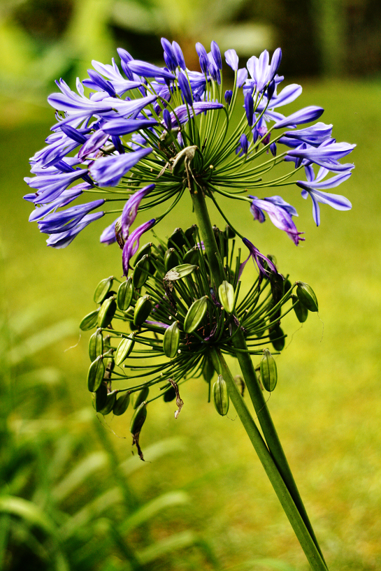 a cultivar of a lily of the nile, from the genus agapanthus, taken in april 2007 during pre-bloom stage at hillbrow garden in cameron highlands. it was singled out using a shallow depth of field to emphasize on the subject while reducing the distraction of the background to create an ethereal surrounding.