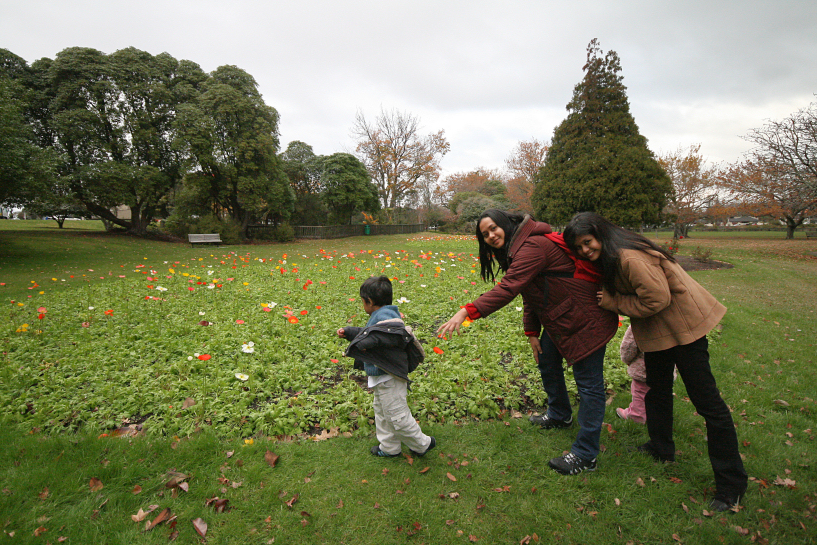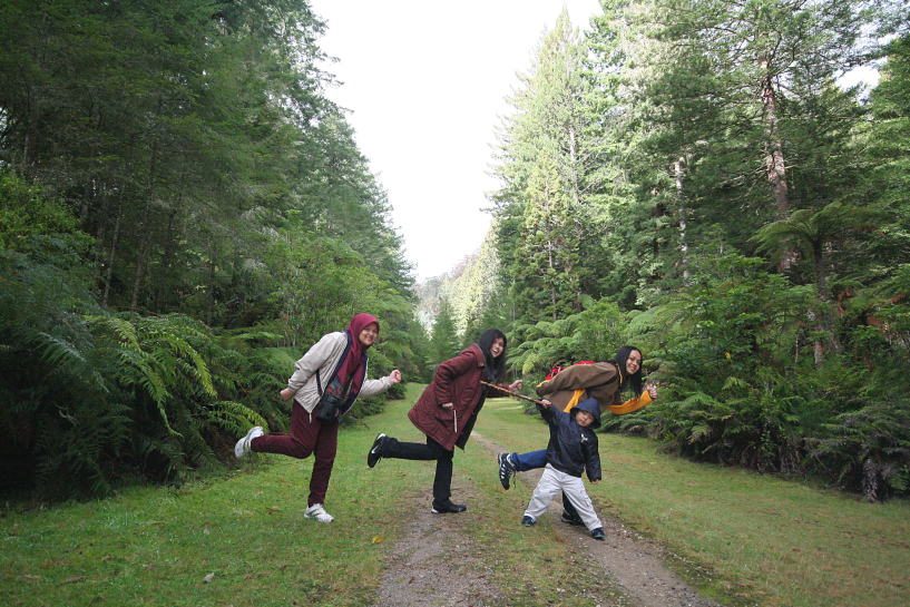 the main reason we went there was because of my fascination with the californian coastal redwoods, ever since i watched the landspeeder scene where luke tried to outrun the imperial stormtroopers in return of the jedi. and the forest happened to be teeming with redwoods. although they were still young by redwoods standards (planted in 1901), they were quite big for our eyes. the rain was already slowing down into a light shower and we chose the waitawa track, a 1 hour walk through redwoods, douglas firs, silver ferns and the giant mamaku ferns. it was truly a breathtaking experience of walking and talking among us among the giants of nature. once completed, we went to the redwoods gift shop & information centre where zack, alif, ija and aina went inside to pick up some items while yomi and i waited outside. it was here also that we first sampled the famous local tiptop ice-cream.