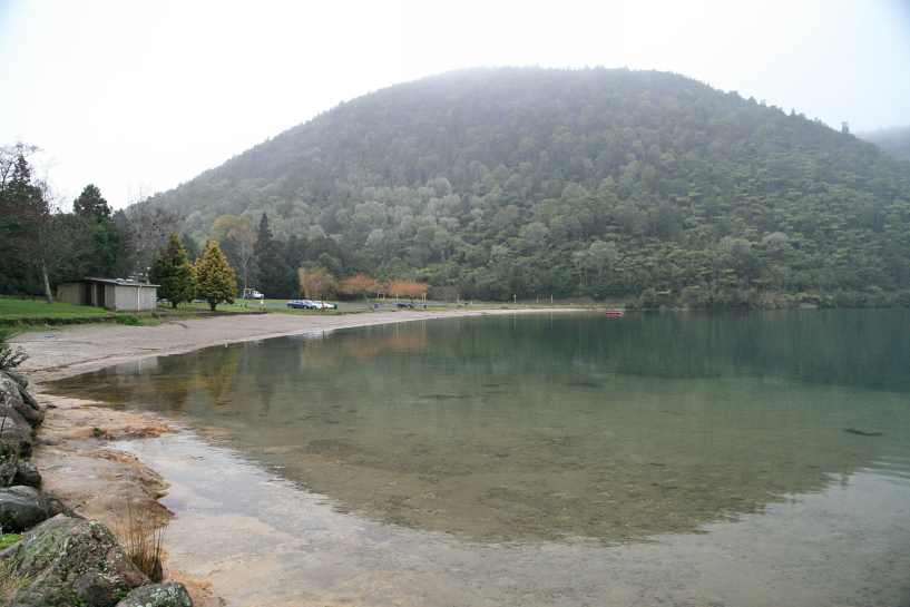 the lake is tikitapu (or blue lake) and we had our packed fried rice specially prepared by chef maz of hamilton that morning. the rain was getting heavier and we had to run to the nearest toilet some 100m away along the edge of the lake. the climate was getting colder, about 8°c and with much haste, off we went to our next destination, about 3 km from the lake, whakarewarewa forest.