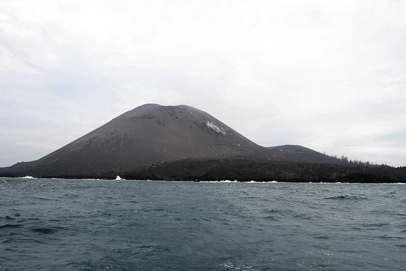 after leaving carita, java 2.5 hours before, this was the nearest (about 1km) to anak krakatau that hascamar, the twin yamaha enduro 40 hp boat managed to bring us and i could capture before seasickness (especially if i looked through the viewfinder) rendered me completely useless against the heavy swells inside the krakatau archipelago. seconds later, anak krakatau unleashed its barrage of eruptions. by then, i was sitting poorly lucky enough not to vomit and encouraged the others to do the same. taken in january 2011.