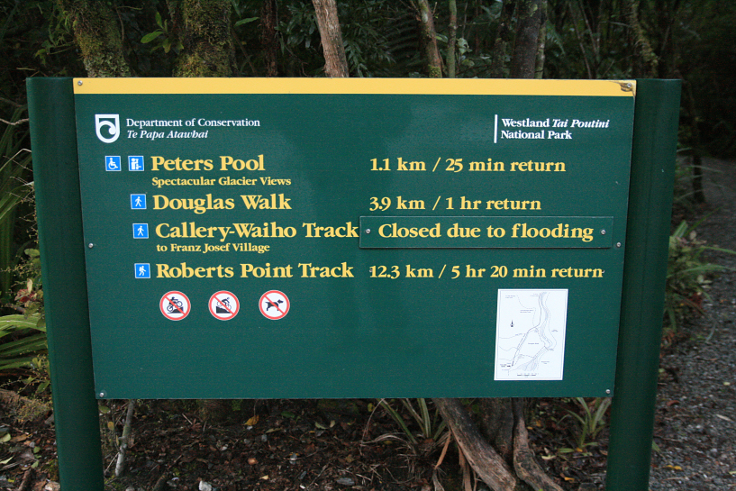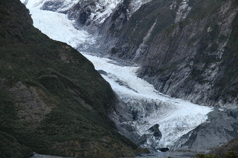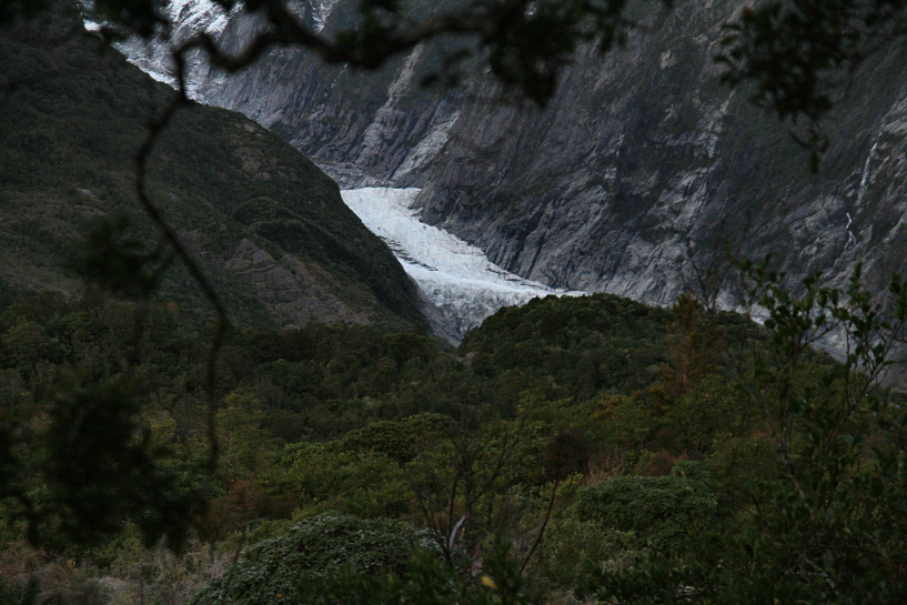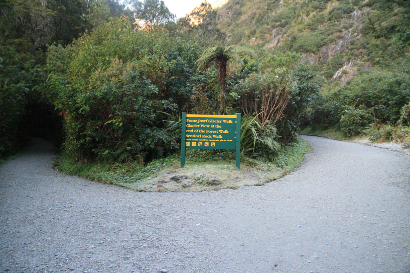 to follow the same path which will wind up next to the glacier would take me more than an hour to reach and my time was precious. therefore i left the place and walked towards the carpark and reentered the westland national park which comprises of other glaciers and reserved forests along the west coast through another track, the sentinel rock track, which promises to have a better and closer view of the terminus but requires a bit of steady climb. the sign was accurately true and it steadily ascends for 30 minutes before reaching the wooden viewing platform where i thoroughly sit on the wooden steps for 5 minutes, out of breath and almost passed out. but the view from the platform was rewarding enough that as soon as i stood looking towards the glacier, i was re energized by the whole panorama and i began to take pictures earnestly.