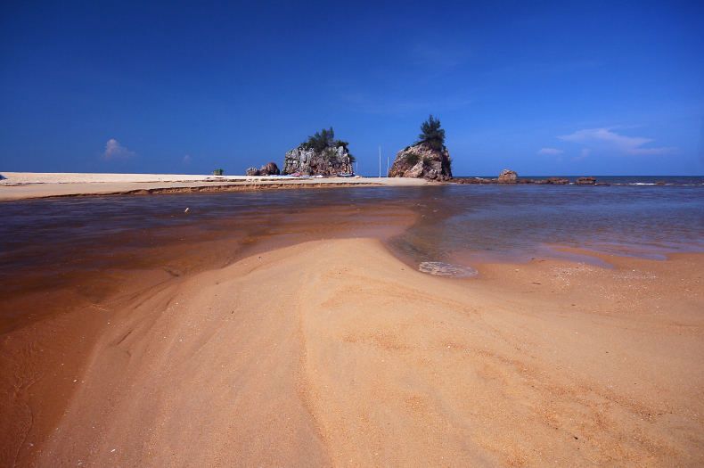 scenic rocky outcrops on the banks of kemasik river estuary facing the south china sea near kemasik beach in terengganu. june 2011.