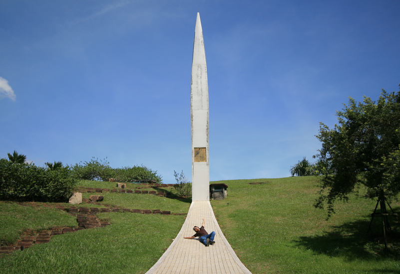 a huge sundial obelisk protrudes in the centre of the thematic putrajaya botanical gardens, home to more than 700 species of amazing flora. and your eyes are playing tricks on you if you “presumably” notice a lady sprawling on the hot cobble walkway since i don’t see any. purportedly taken at noon in november 2010.