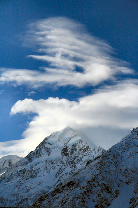 the closest my lens could brought my eyes to the summit of aoraki mount cook, at 3,754m, the highest mountain in new zealand. pic was taken 12 km away from mount cook village late afternoon in june 2010.