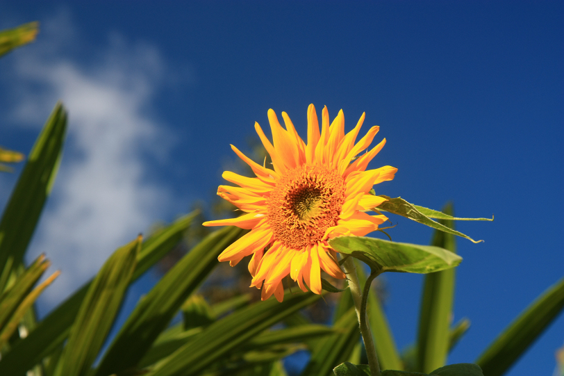 vivid flower head from a cultivated sunflower found near allan’s water at fraser’s hill. the fiery bloom was lucidly in contrast with the blue sky as a backdrop though mildly spoiled by the intervening toothed leaf. december 2009.
