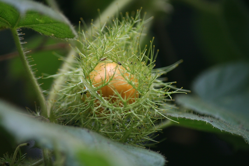 while looking for any living insects or reptiles near my parents’ home in ketereh, i found a creeping vine plant that was quite familiar. the stinky but edible ripe fruit of a passion flower, protected by its bract gave a creepy sight that seemed to be somehow the lovechild of the antagonist from the day of the triffids and a suicide bomber. december 2007.