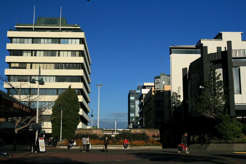 on the morning of day 13, my fatigue was gradually healing and by 10:00 am, i was feeling rejuvenated again and after having a heavy lunch, i immediately requested diman to send us to hamilton city. by 1:00 pm, we were walking in the downtown of the waikato region capital. we strolled along victoria st., supposedly the trendiest area in hamilton but had to admit that it was a sleepy town. we went to many shopping complexes and shops but we couldn’t even find any shop that sells souvenirs. we also had to come into terms that hamilton city is not a tourist destination. we bought some stuff at the warehouse, a hypermarket chain and also at k-mart, which i didn’t even bother to enter and volunteered to look after the kids instead. we met all kinds of people, some who even entered the hypermarket barefooted. diman already remarked beforehand that most of the townspeople are really proud of their farming root that they try to emulate their ancestors’ culture as best as they could, walking barefooted (even on asphalt) included. getting bored, at 2:45 pm i called diman to come and pick us up and we waited for him near the city council building and hamilton city libraries at garden place.
