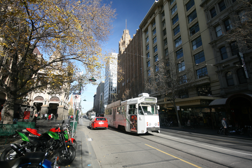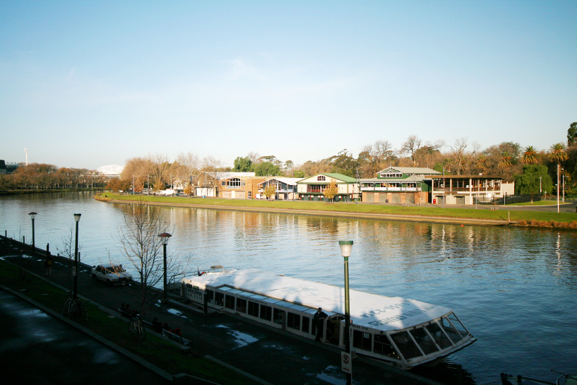 when everybody got what they wanted, we all crossed flinders st. and went to federation square across the road where we just sat on the steps overlooking the cathedral and the station. the newly built civic centre is controversially hated by the melburnians as an eyesore of its ugliness and a pimple among the heritage landscape of st. pauls cathedral and flinders st. station. we spent there like hours getting colder as the sun also descended and i left them once walking alone towards the yarra river and stopped only at the railing of the said river. satisfied with the pics of the river, the princes bridge and the southbank precinct, i rejoined them at the steps, where we all went to the toilet and decided later to walk towards flinders st. station and to hop on the free city tram.