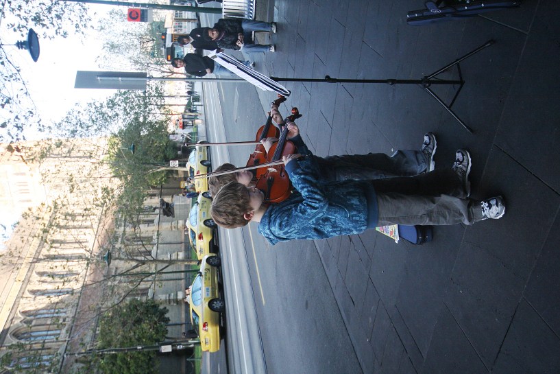 once everybody had eaten and had the will to walk again, we left mcdonaldโs and walked along elizabeth st. facing south and the streets was getting heavier with crowds. when i had the chance to turn left again, i did so at little lonsdale st. where we walked alongside melbourne central with its famous 84m high conical glass roof (but i didnโt take any photo as alif was still on my shoulders!). finally we reached swanston st., claimed by many as the most happening high street in melbourne cbd and it was rightly so. people of all colours walked on both sides of the street and it was adorned with rows upon rows of shops and restaurants.
