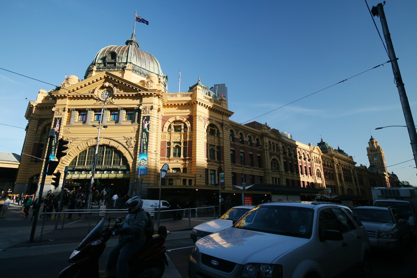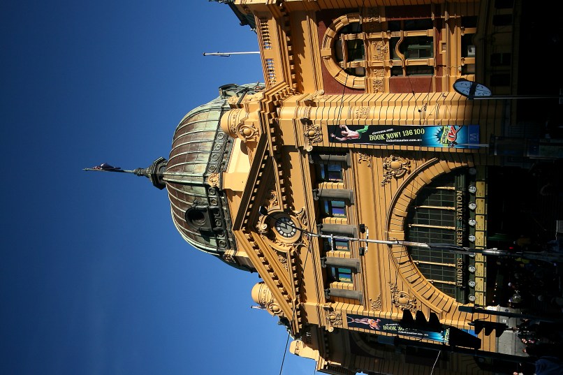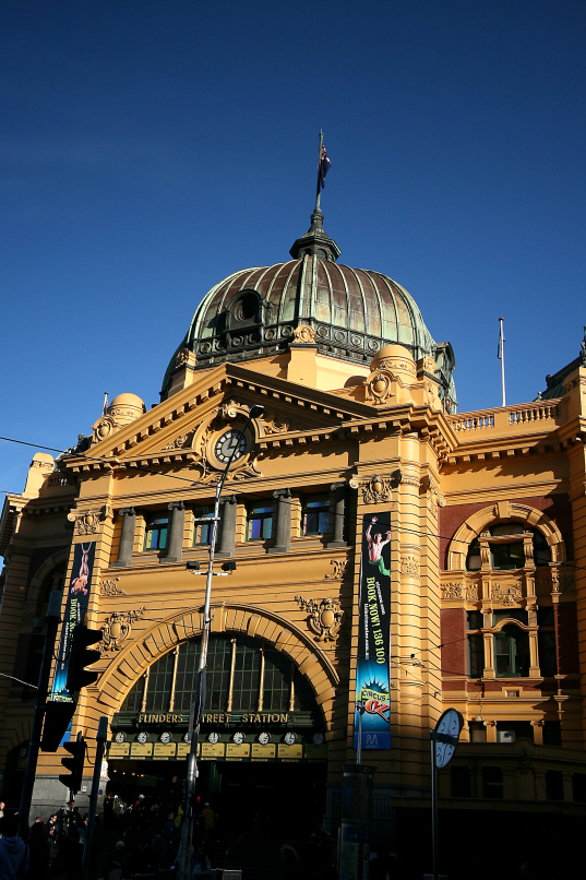 โผโผ flinders street station from the intersection of flinders st. and swanston st.