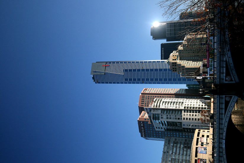 not more than 10 minutes later, our bus came by and we hopped on and sat at the back of the bus. we just stood there watching as the bus left the airport area through tullamarine freeway and entered the 2nd most populous city in australia (after sydney). the weather was truly glorious but a bit cold. the 40 minute trip ended at skybus terminal, southern cross street station, where we walked out towards the sunny street of melbourne cbd.