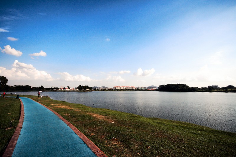 a view of the vast 57 hectares lake at kepong metropolitan park, near kepong, made famous for its kite flying activities especially on the weekends. june 2007.