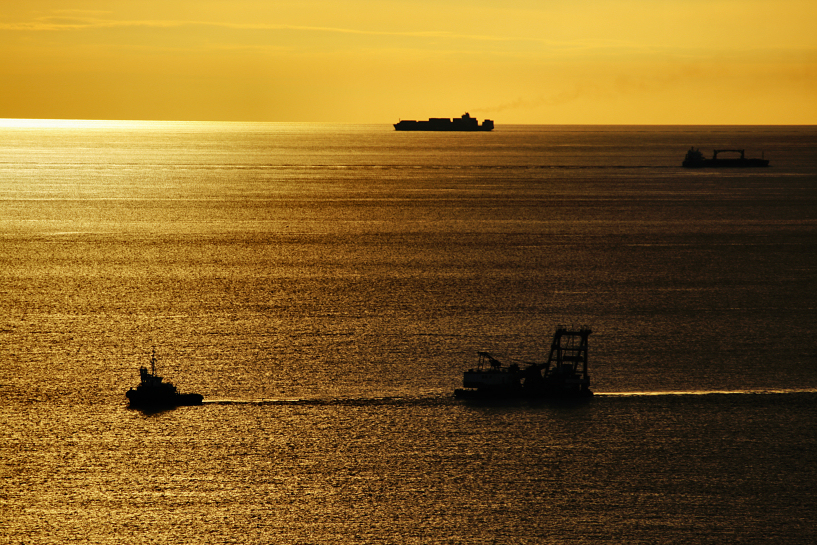 sunset over the strait of malacca, a crucial shipping channel linking the indian ocean and the pacific ocean. pic was taken near a lighthouse at tanjung tuan, malacca in december 2010.