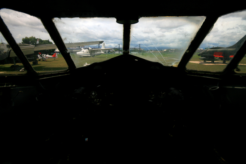views of other remnants of the royal malaysian air force exhibits from inside the cockpit and fuselage of de havilland heron, a propeller driven airliner which was phased out in 1979 and with a role as communication flights. rmaf museum, sungai besi october 2011.