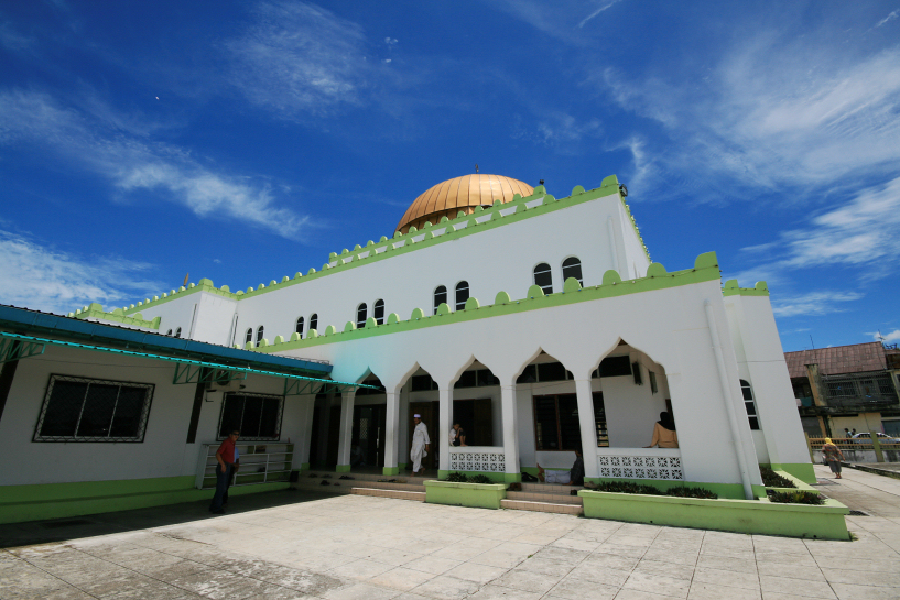 an extreme wide angle view of ar-rahman mosque, located in the centre of semporna town with an ample free parking which we fully utilised during our visit in march 2007.