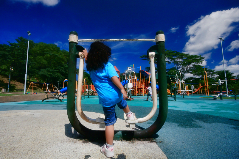 naomi anis tried her best shot at an oversized outdoor fitness equipment near the children’s playground, menjalara lake garden, bandar menjalara, and evidently, she gave up. october 2011.