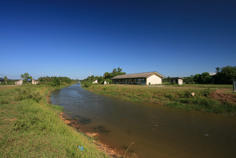 one of the network of canals built for rice fields irrigation that formed a grid on the plains near ketereh dam, binjai village, kelantan. march 2010.