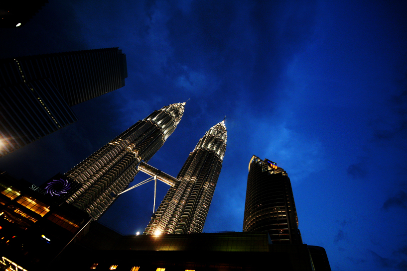 the tallest buildings in the world from 1998 – 2004, the petronas twin towers were surpassed by others since then but still remain the tallest twin buildings in the world at 452m. pic was taken from klcc park at dusk. kuala lumpur january 2012.