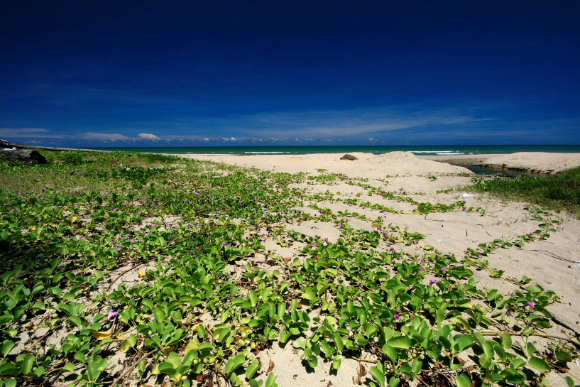 another mesmerising view of pantai irama in bachok, with white sands carpeted by beach vitex. october 2007.