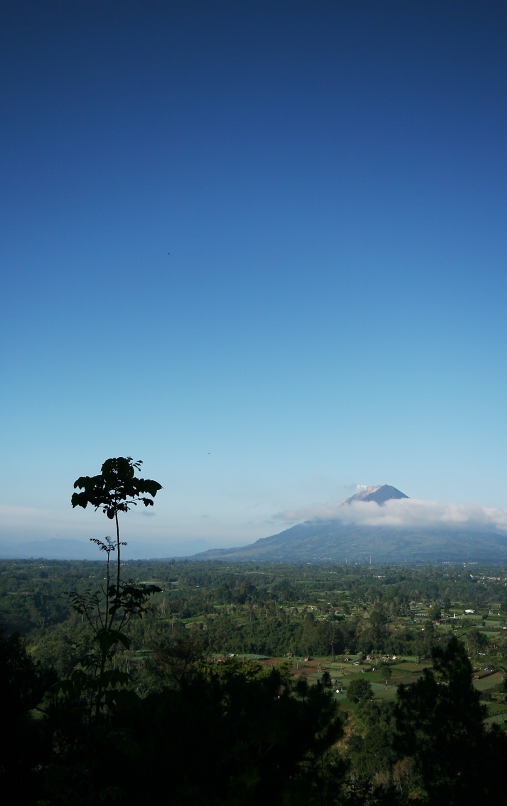 mt. sinabung (2,460m), an active stratovolcano taken from gundaling hill near berastagi, north sumatra. december 2011.