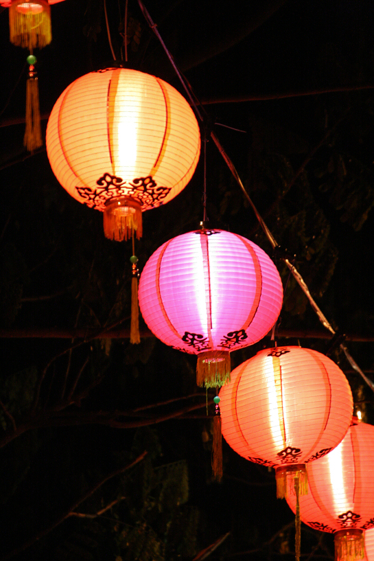 decorative chinese lantern lampshades over a road near segambut in celebration of the year of the (water) dragon of the chinese new year today. it’s a mini warzone here with the bombardments of heavy sounds from firecrackers throughout the night! kuala lumpur january 2012.