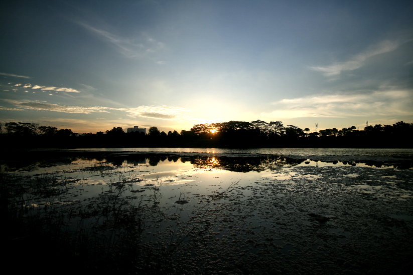 sunset at batu metropolitan park, a former open cast tin mine turned into a park for the city folks off jalan ipoh, north of kuala lumpur. january 2012.