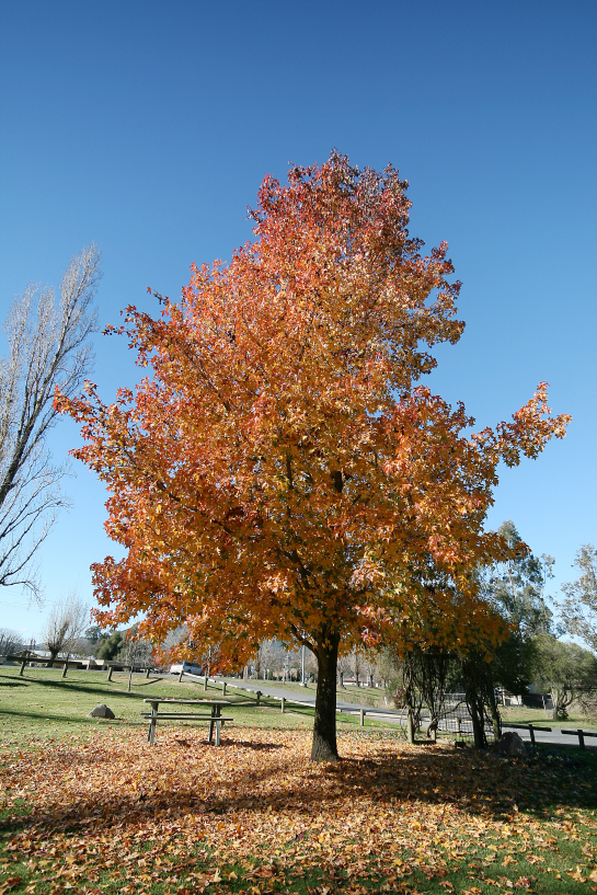 one of the few maple trees still in its autumn colour although it was already officially in winter just off the great alpine road at myrtleford, victoria. june 2010.