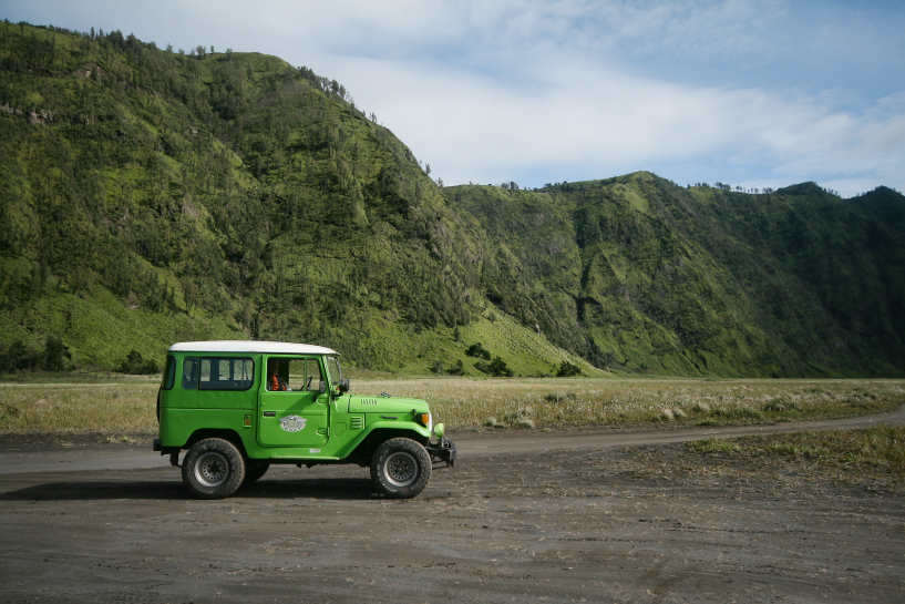 from inside the tengger caldera, on the sea of sand, we looked back at our off-road vehicle and the caldera rim from where we observed the sunrise a few hours earlier. east java february 2012.