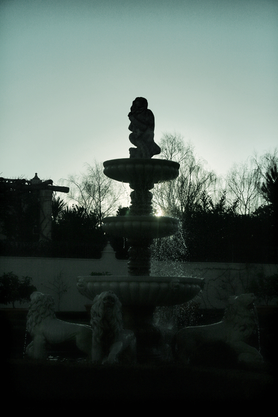 bubbling water jets out of the ancient roman inspired fountain at the italian renaissance garden, hamilton gardens, hamilton. june 2010.