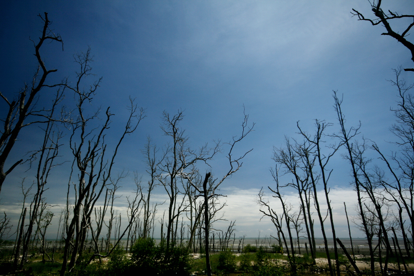 they piled up the soil along that area to reduce the badly affected beach erosion, causing the mangroves to die, hence creating this dramatic effect.