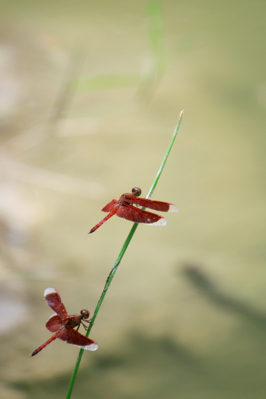 a pair of male odonates (neurothemis fluctuans) at bukit kiara nature park. kuala lumpur may 2012.