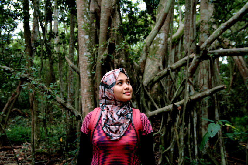 zack with the strangler fig tree at kuala selangor nature park. kuala selangor september 2012.