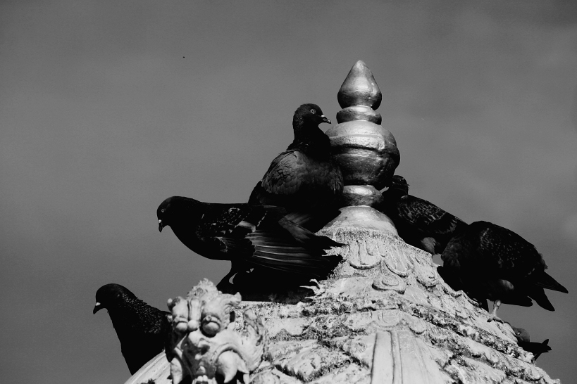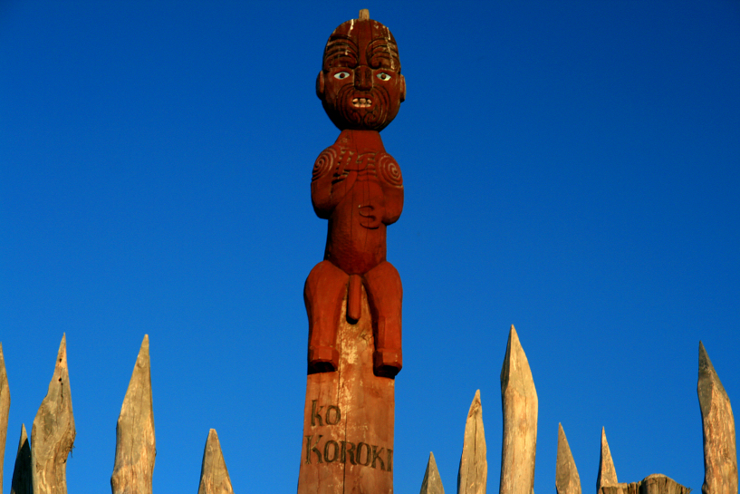 a tekoteko on top of a taepa palisade fencing line at the traditional maori garden, hamilton gardens. hamilton, waikato june 2010.