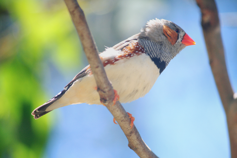 a male zebra finch with boisterous rhythmic calls at cleland wildlife park. adelaide hills, south australia november 2012.