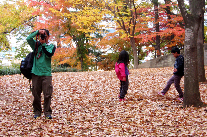 taking photo of zack taking photo of me and the kids at sajik park, gwangju city november 2014. oh and merry christmas!