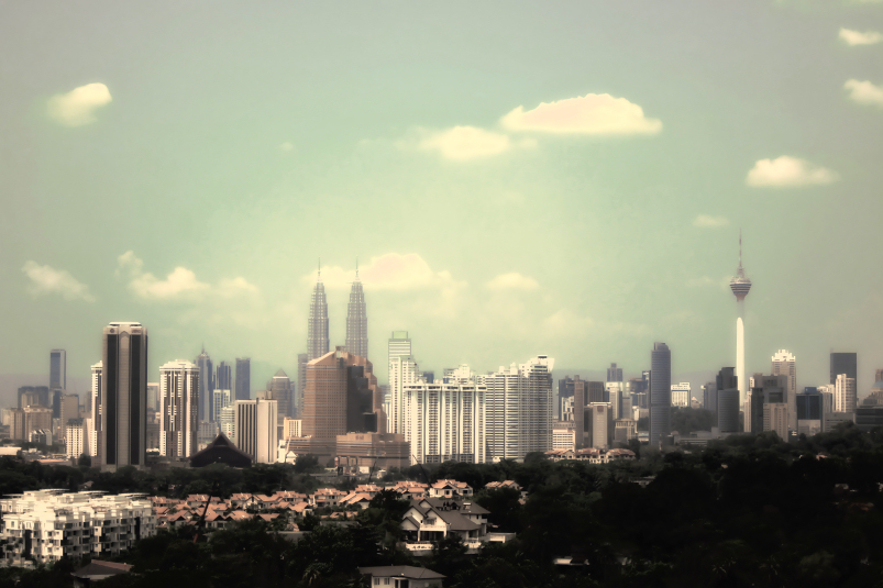 the petronas twin towers from klcc park, kuala lumpur february 2015.