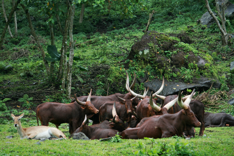 an unidentified mole among a herd of sanga cattle at taman safari indonesia II. east java february 2012.
