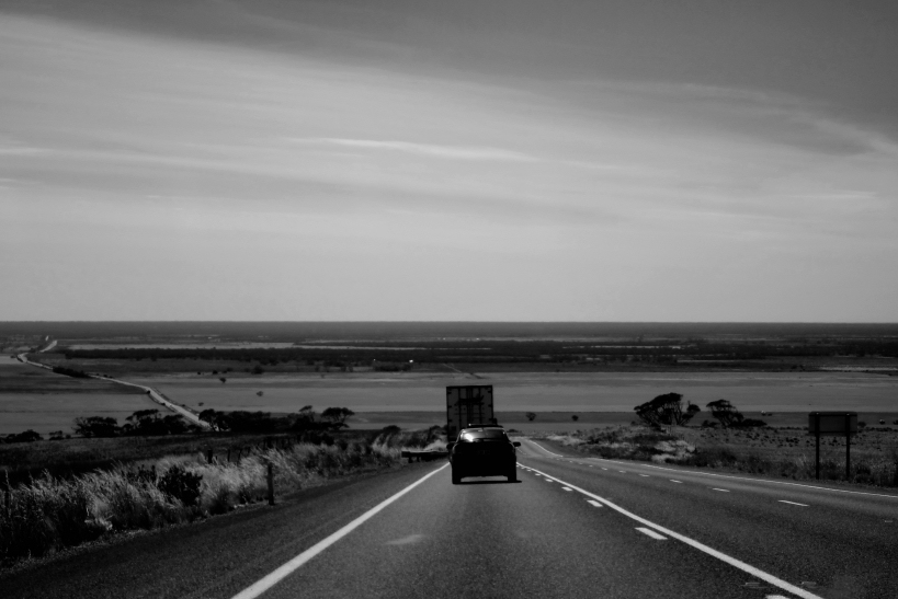 leaving behind the barossa valley and mount lofty ranges, entering the plains of the riverland near truro. sturt highway, south australia november 2012.