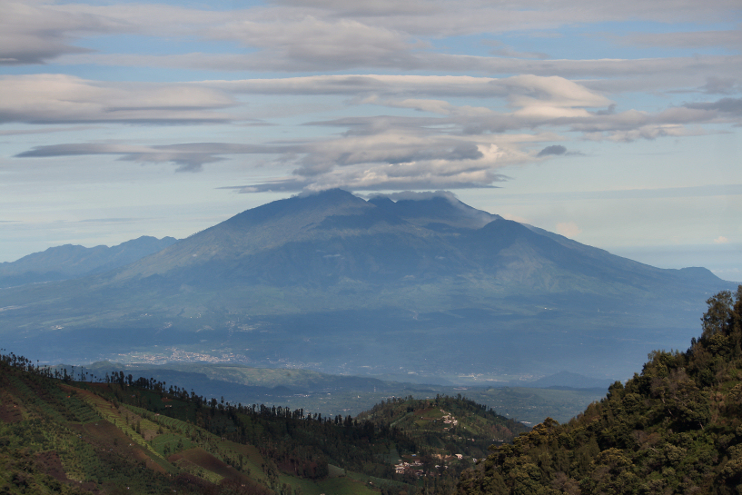 mt. arjuno (3,339 m), a stratovolcano as seen from tengger caldera. east java february 2012.