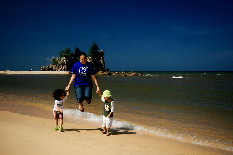 zack and the kids at kemasik river mouth and the south china sea. terengganu june 2011.