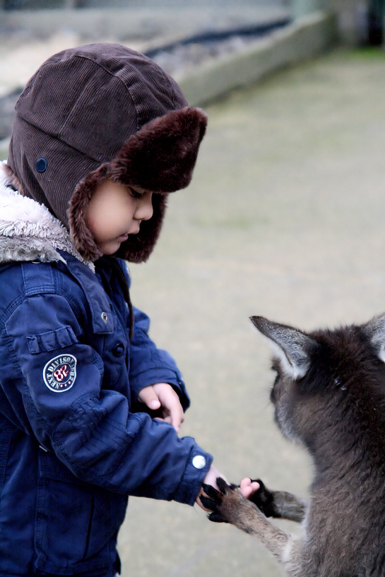 alif and a wallaby getting to know each other at ballarat wildlife park. ballarat june 2010.